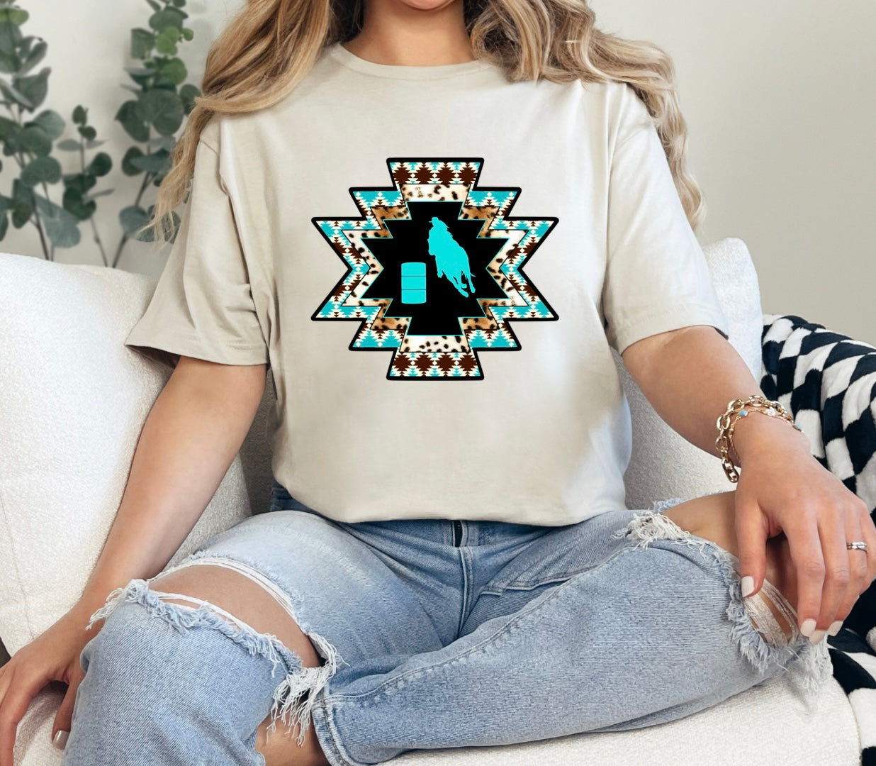 Aztec, teal barrel racing