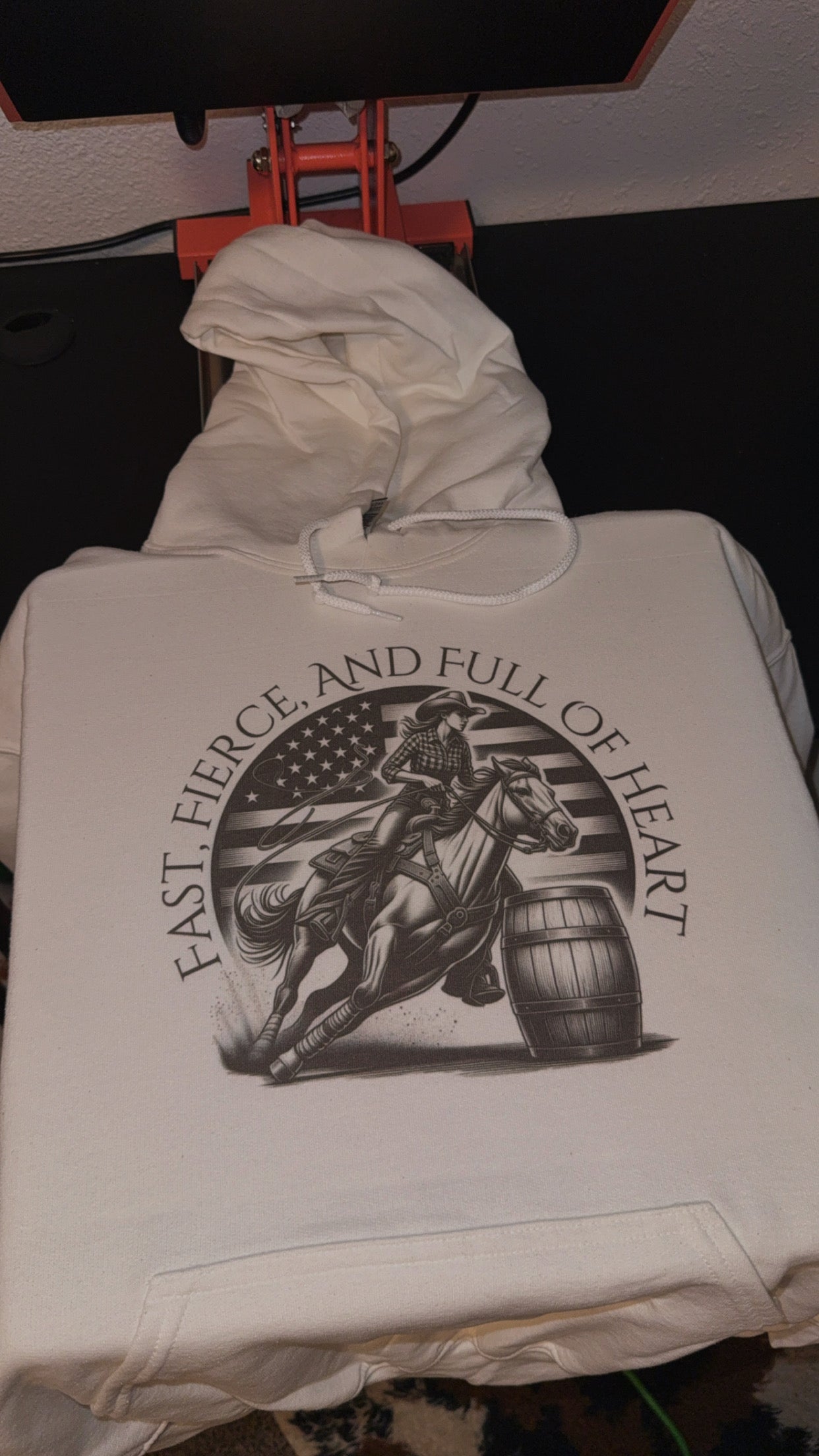 T-Shirts and Hoodies are made out of a 50/50 cotton/polyester blend! True to size and don’t shrink when washed.
