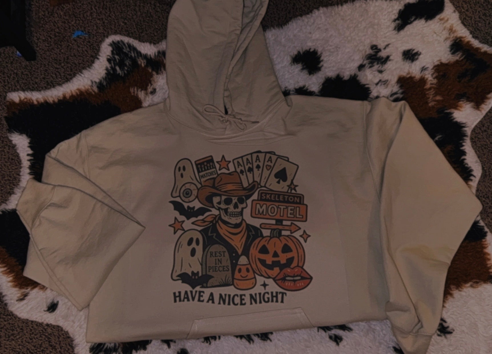T-Shirts and Hoodies are made out of a 50/50 cotton/polyester blend! True to size and don’t shrink when washed.